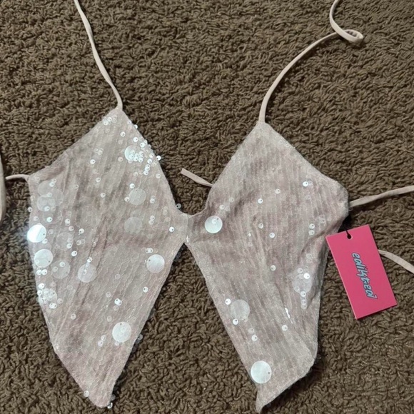 Edikted sequin crop top that ties in the back.