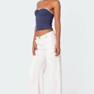 Edikted Ayla Low Rise Baggy Carpenter Jeans White Sz S