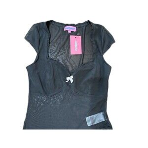 Edikted Black Sheer Mesh Lace Trim Bow Crop Top Y2K Coquette Core Size XS NWT