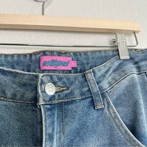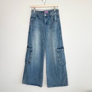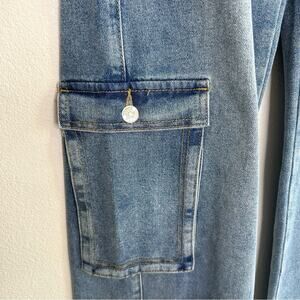Edikted Blue Flare Wide Leg Jeans Cargo Pants Size Small