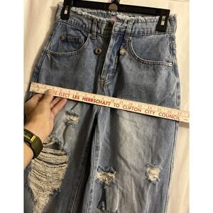 Edikted Blue Jeans Womens S 28”Waist ,29” Inseam ,Wide Leg Button Fly Distressed