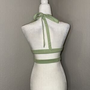 Edikted Cady Cutout Halter Crop Top Women Small Green Tie Front Summer Beachwear.