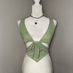 Edikted Cady Cutout Halter Crop Top Women Small Green Tie Front Rave Going Out