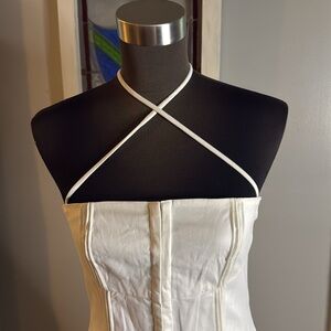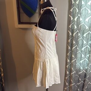 Super fun white cotton blend pleated mini dress with corset hooks up the front