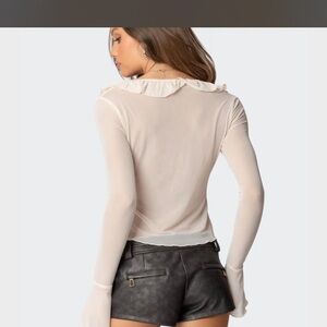 Chic cream blouse with ruffle details. Perfect for stylish outings.