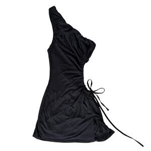 Edikted Cut Out Slitted Micro Dress One Shoulder Mini Dress Size Small Black Y2k