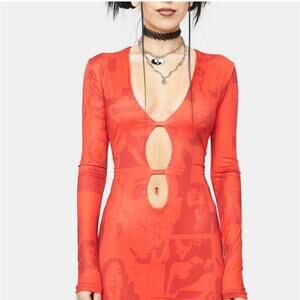 Edikted Dollskill Red Pop Art Graphic Bodycon Mini Dress Size Small