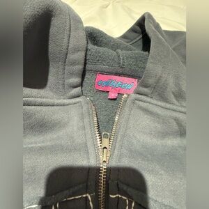 Stylish gray zip-up hoodie. Features front pockets and hood. Edikted logo on chest.