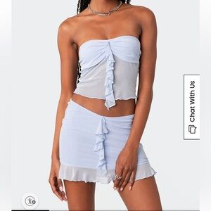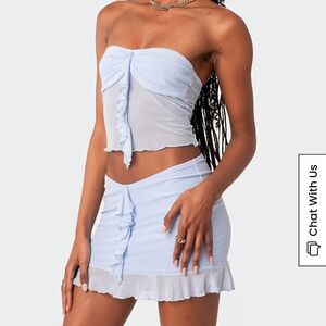 Brand new, never been worn, Edikted ruffle skirt set. Both the top and the skirt are a size medium and are being sold together. It’s adorable and comfortable!