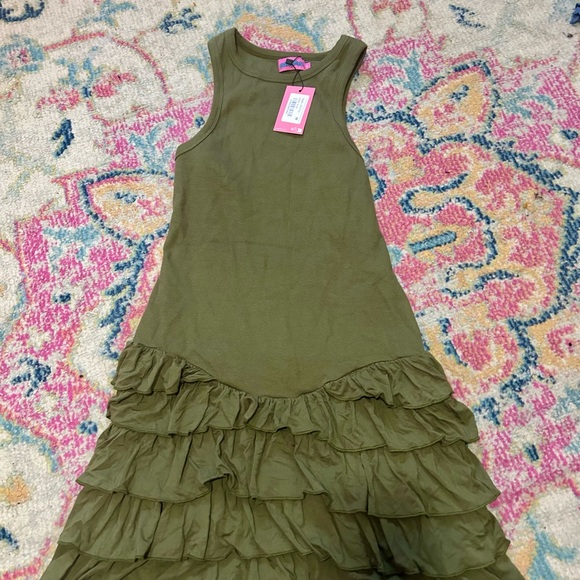 Charming olive green dress with playful ruffles, perfect for any occasion.