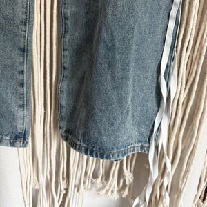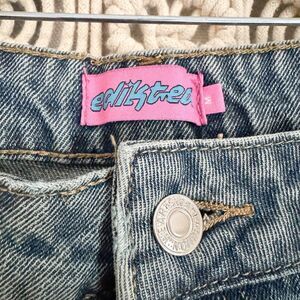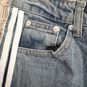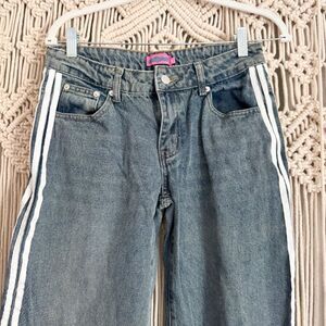 Trendy and edgy low-rise wide leg jeans from Edikted featuring contrast side stripes and cute bow details. A bold Y2K-inspired style that stands out. Great used condition with normal wear—no major flaws.