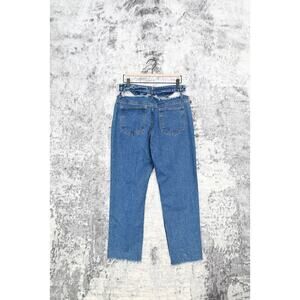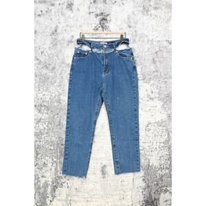 Edikted Medium Blue Wash Raw Hem Separated Waist Band Jeans