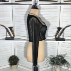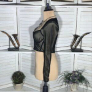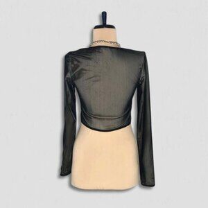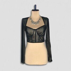Edikted Megan Mesh Structured Corset Crop Top Long Sleeve Sheer Lined Black sz M