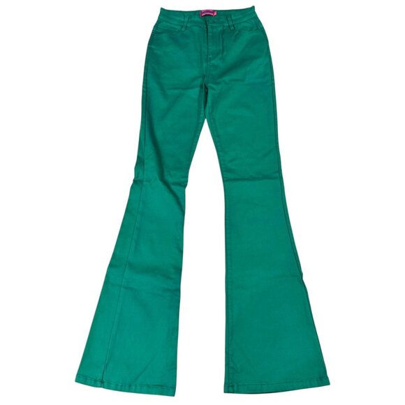 Edikted Pants Womens MED Green High Rise Flare Bell Bottom Stretch Zip Fly