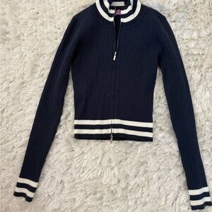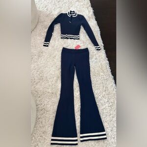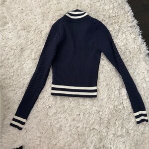 Chic navy sweater with ribbed design. Foldable collar and fitted so super cute on its own or easy to layer. Has matching pants :)