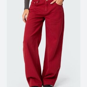Bold red corduroy trousers by Edikted. Ideal for a trendy look.