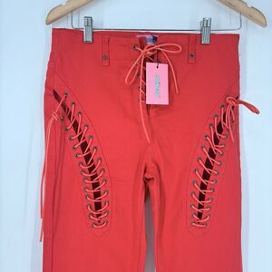 Edikted Red Lace Up Flare Pants Women’s Size M High Waist Corset Style Y2K
