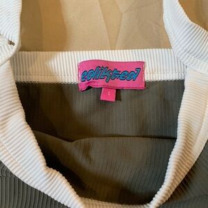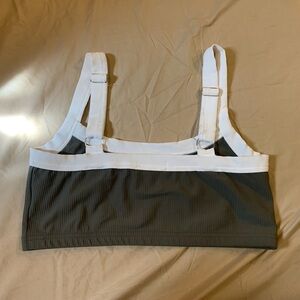 Stylish ribbed bralette. Features a two-tone design. Comfortable fit with wide adjustable straps.