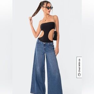Edikted Vivie Ribbed Cut Out Bodysuit size large!