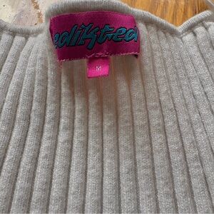 Stylish ribbed sweater. Features long sleeves and a square neckline. Perfect for layering.