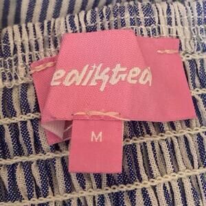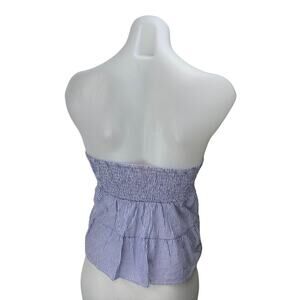 Edikted Women's Blue Striped Sleeveless Strapless Ruffle Crop Blouse Tube Top M