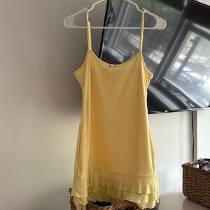 Turn heads in this vibrant yellow mini dress from Edikted, designed with a ribbed texture and ruched sides for a flattering silhouette. The sleeveless bodycon slip style features delicate spaghetti straps and a scoop neckline, making it an ideal choice for a night out or cocktail event. Its adjustable drawstrings allow for a customizable fit, ensuring you step out with confidence.