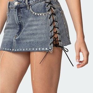 Edikted feminine denim short skirt with ties on side