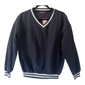 Edikted Caryn Oversized Navy Blue Nautical V Neck Cozy Sweatshirt Size Small