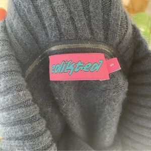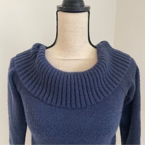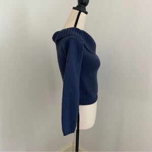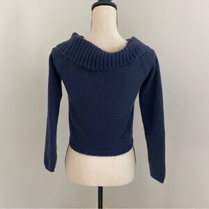 Edikted Cowl Neck Cropped Sweater size Small Navy Blue Boxy Knit Ribbed Cuffs