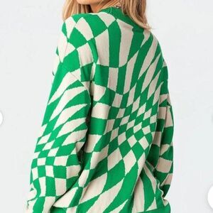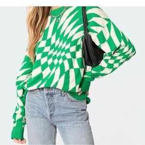 Edikted Morphy Oversized Sweater Green and Cream Size XS / Size Small