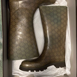 Gucci Edimburg 248516 Rubber GG Guccissima Rain Boots Shoes. Condition is Used. Shipped with USPS Priority Mail. Has some discoloration on the boots, I’m not sure why.