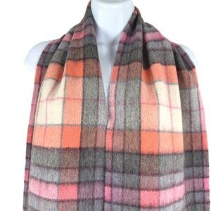 Edinburgh Scarf Lambswool Tartan Plaid Check Coral Grey NWT MC-79