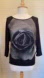 Edista Los Angeles Black Flower Mesh Panel Long Sleeve Whimsigoth top with a rose in front with a top mesh overlay with a scoop neck