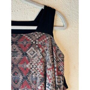 Edista Womens Cold Shoulder Top Geometric Tribal Print S black gray rayon READ