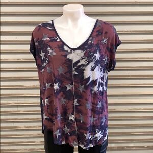 Edista red white and blue with stars short sleeve top hi Lo Gently used see photos for more details Women’s size Large G