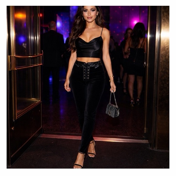 Edit The Label Ribbed Lace Up Front High Rise Pants