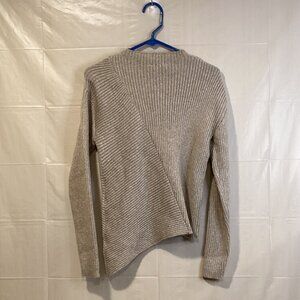 Step up your style game with the Edited by Remi Bader Rib Sweater. Crafted for a slightly loose fit, this ribbed-knit sweater is the epitome of comfort and luxury. It boasts a stylish mock neck, long sleeves with dropped shoulders, and a unique seam that runs diagonally across the front and back. The trendy asymmetric hem starts at the waist and falls just below the hip, adding a touch of modern elegance to your look.
