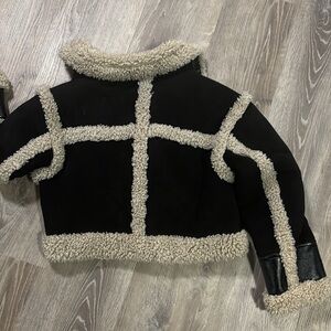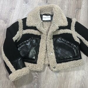 Part punk, part mountain chic, shearling trim brings a fun and funky look to this faux leather moto jacket by Stand Studio. Throw on this fabulous coat when you demand to stand out on your commute.