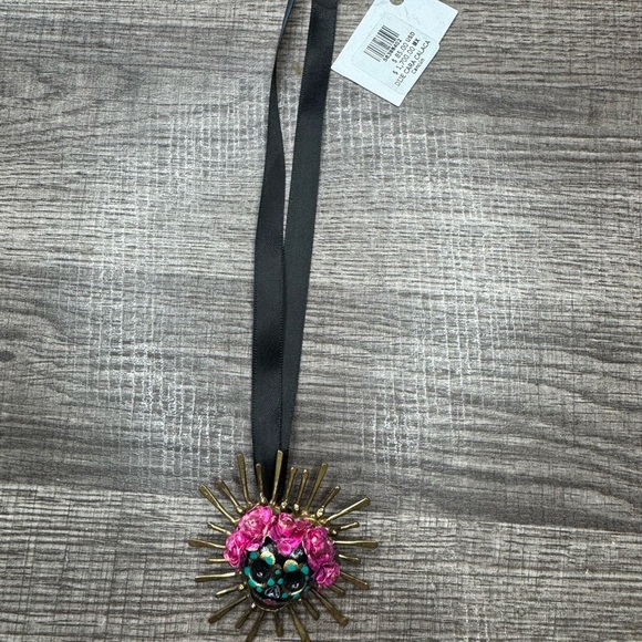 Edith Orozco Black Ribbon Necklace with Pink and Gold Sunburst Pendant