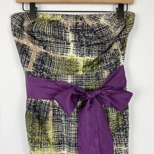 Edme & Esyllte | Anthropologie Wythes Purple & Green Sash Strapless Sheath Dress