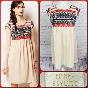 Edme & Esyllte Petra Cream with Blue & Red Aztec Embroidery A-Line Swing Dress