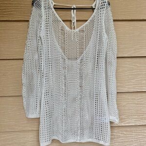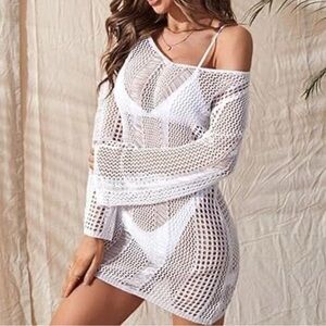 Stylish white crochet beach cover-up. Perfect for a day at the beach.