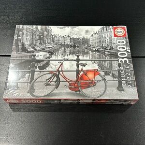 Beautiful black and white view of a canal in Amsterdam is punctuated by a red bicycle in the foreground. Educa puzzles are known around the world as the being the best quality puzzles available today and the leader in innovative puzzle art and graphics.