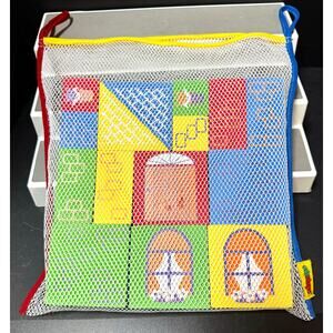 When wet, the blocks stick together, allowing children to build structures in the bathtub or pool.