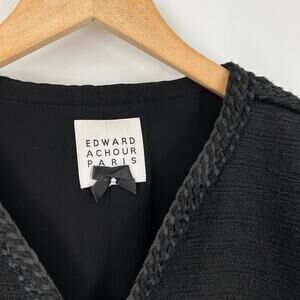 Edward Achour Paris Black Tweed Cropped Parisian Blazer Size 46