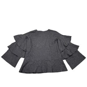 Edward Achour Paris Designer Grey Bell Ruffle Sleeve Sweater
