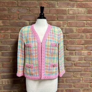 Edward Achour Paris Women’s Pink Multi Checkered Blazer Jacket Size 42 NEW