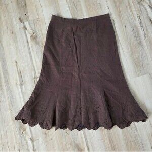Edward Brown Midi Linen Blend Skirt Embroidered Eyelet Witchy Hem Sz12