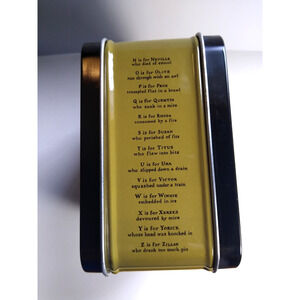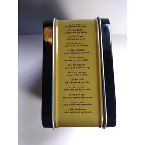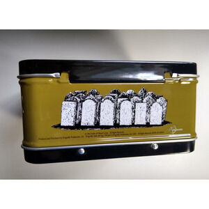 Gothic mustard green/black color. Bring a touch of macabre charm to your collection with this rare and unique "The Gashlycrumb Tinies" metal lunchbox, featuring the iconic illustrations of Edward Gorey!