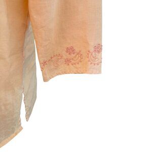 Edward Irish Linen Tunic Top Women’s SZ:M Peach Embroidered Boho 3/4 Sleeve